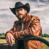 Yellowstone nuestra Chamarra de Piel encerada con un tacto increíble y un color whisky único que mejora con el tiempo.