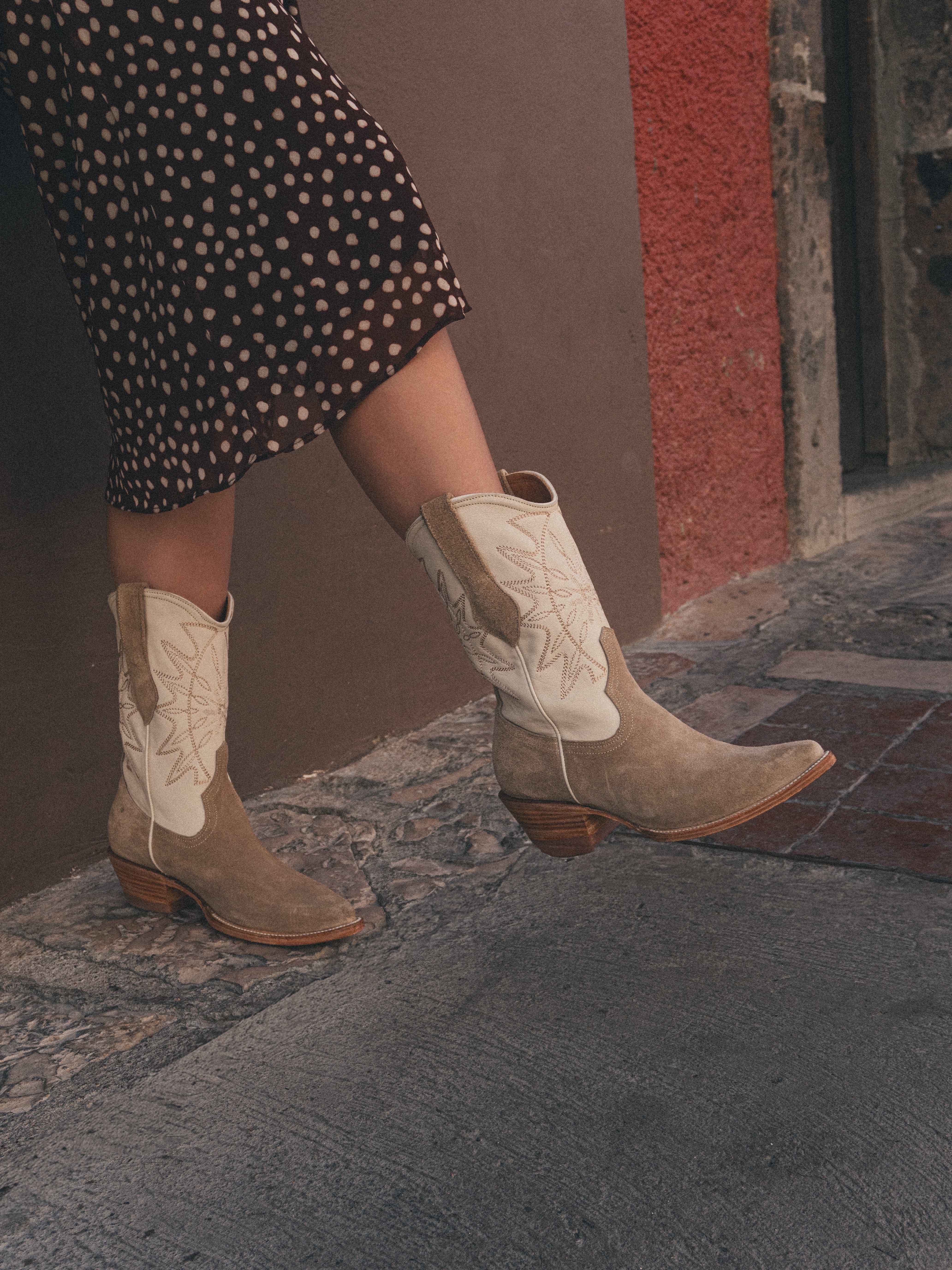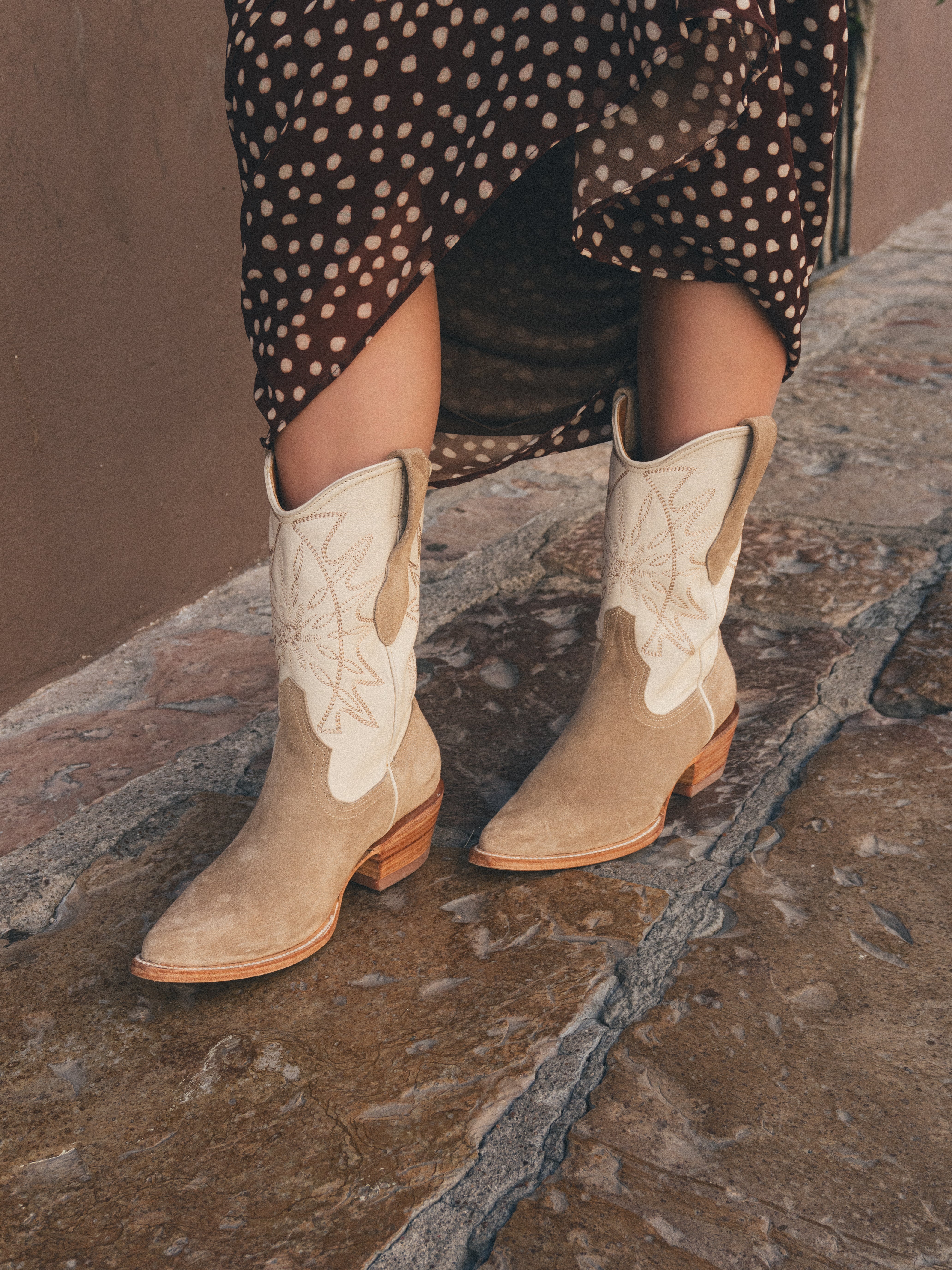 Cada par proyecta una personalidad serena pero firme, con ese punto exacto entre delicadeza visual y carácter auténtico. Esta versión funciona especialmente bien para clientas que quieren una bota premium versátil, fácil de combinar y con una estética más pulida dentro del guardarropa vaquero.
