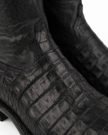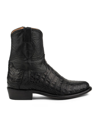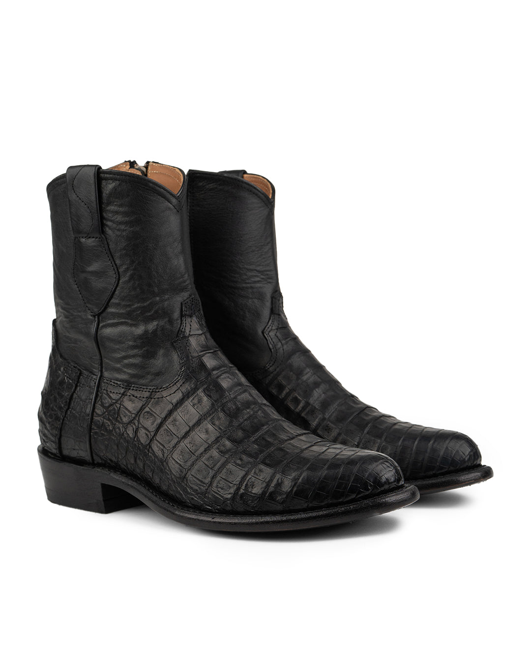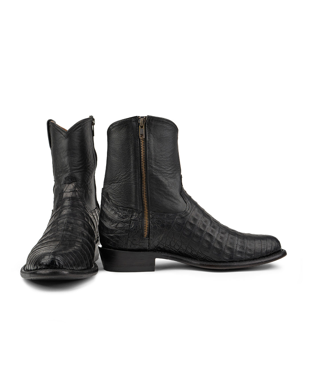 Hecha con Piel de Caiman, cada bota con cierre tiene un diseño único con patrones y marcas naturales que cuentan historias de fuerza y carácter.