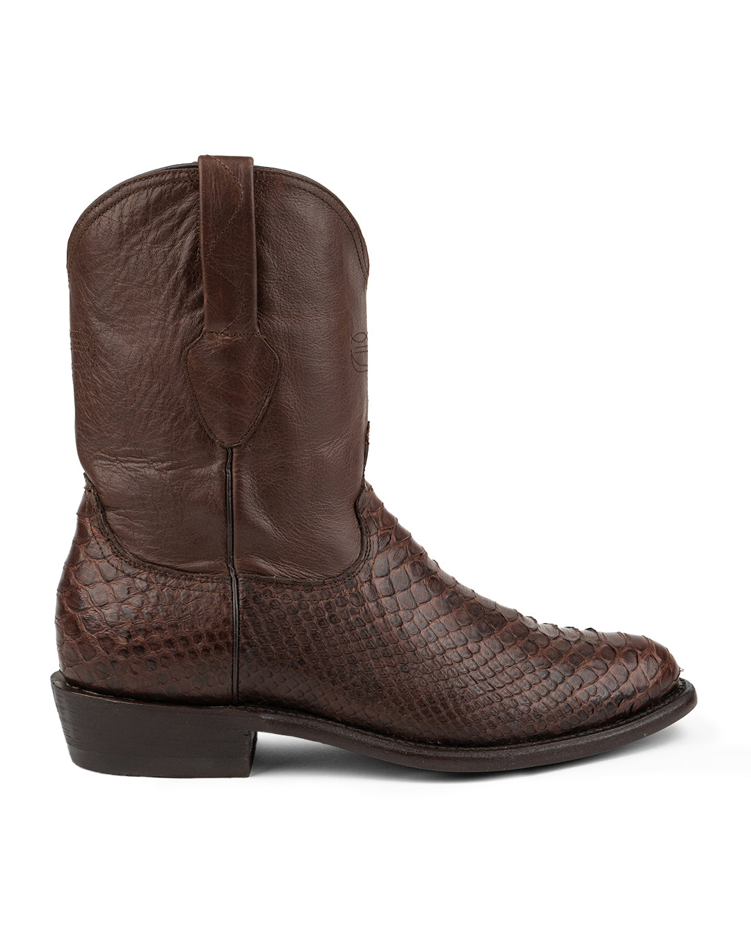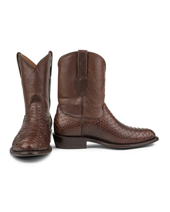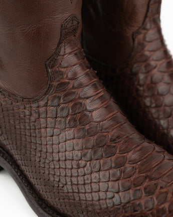 Forjada con piel de Pitón, cada bota con cierre está confeccionada con una textura única y cicatrices naturales que narran historias de valentía y resistencia.